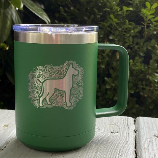 Save Rocky the Great Dane Rescue and Rehab Cropped Ear Great Dane Mandala Mug