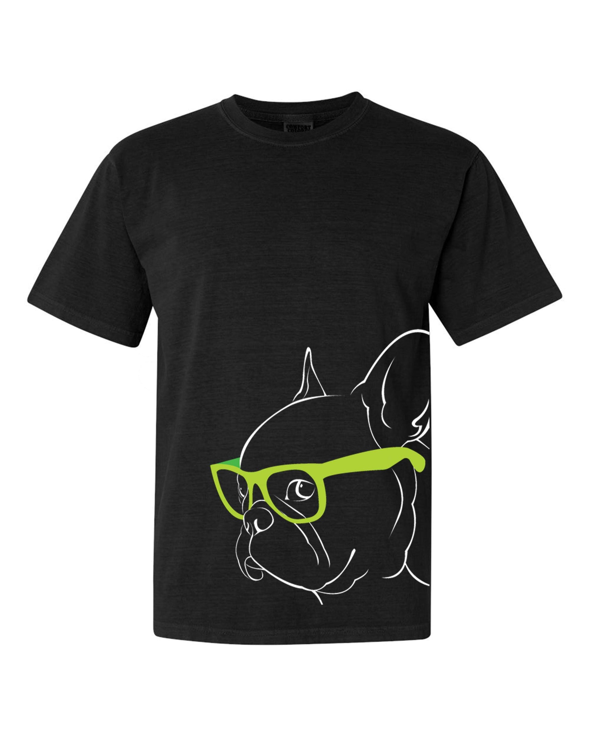 French Bulldog - looks super smart in his adorable Green Glasses - Tee