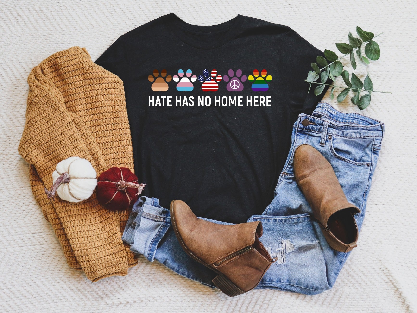 Hate Has No Home Here - paw print tee! They dont see color they dont see hate they just know love. Why not be more like dogs