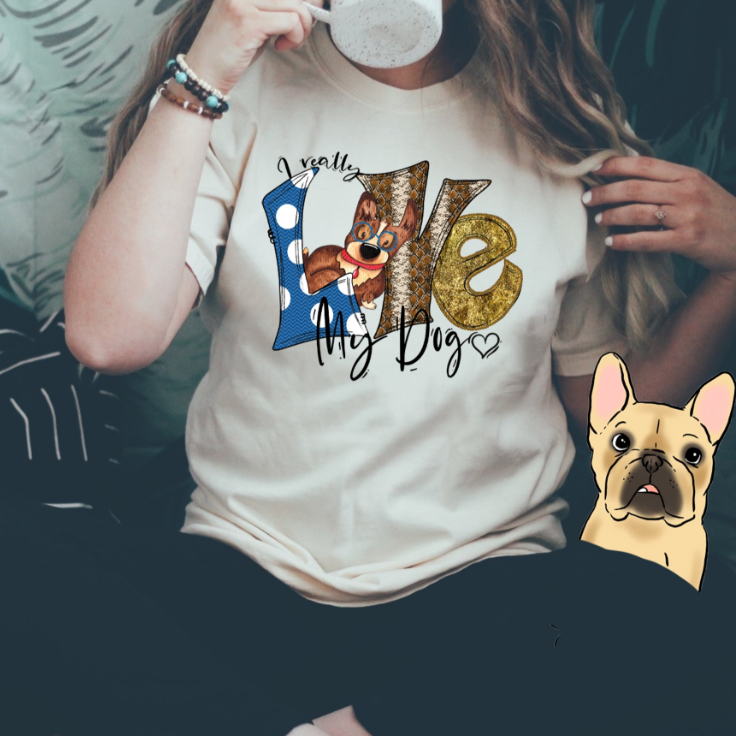 There’s no getting around it. You can’t just love your dog. If you are a dog parent, then you know that you don’t just love, you REALLY LOVE your dog! This sweet, funny dog lover shirt comes in a neutral, natural color, featuring a palette of browns and golds to compliment a wide variety of styles and ensembles. Patterns of animal print, glitter print, and polka dots are vibrant but not busy, and the blue can be the perfect pop of color to serve as an accent. The I Really Love My Dog shirt can be a casual go-to, but it has just enough bling to dress up with style. It makes a perfect gift for your favorite pet parent.